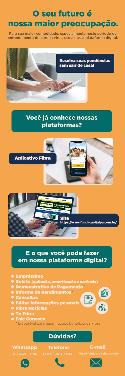 Para a segurança e saúde dos nossos participantes e empregados, informamos que a partir de segunda-feira, 23 de março, não haverá atendimento presencial nos escritórios de Foz de Iguaçu e Curitiba.